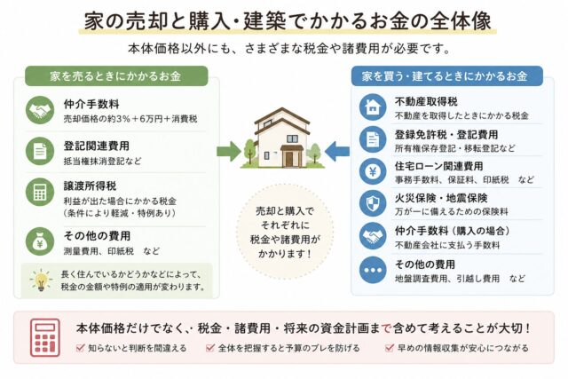 一方で、家を買う・建てるときにも、本体価格以外にさまざまなお金が必要になります。